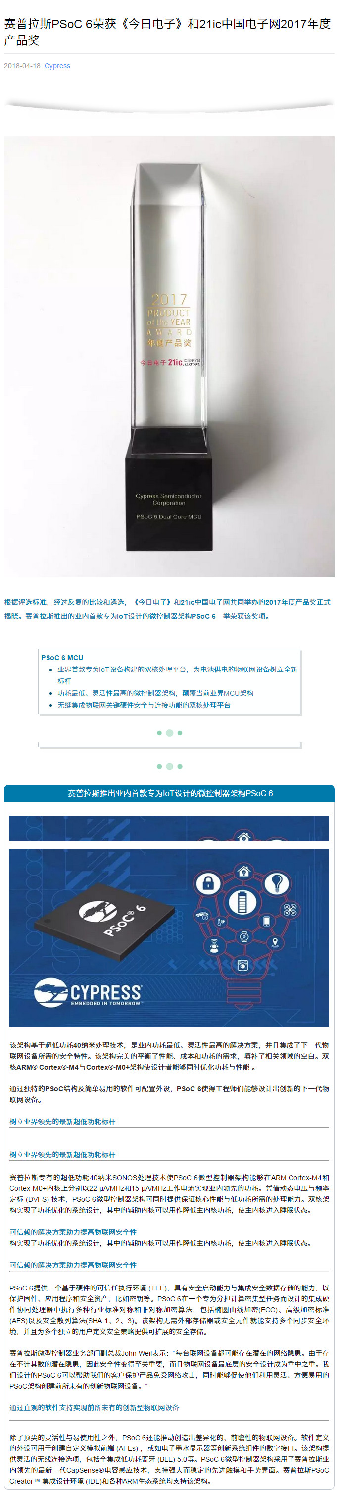 | 賽普拉斯推出業內首款專為IoT設計的微控制器架構PSoC 6 |