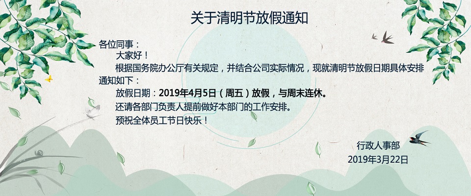 | 關于2019年度清明節放假通知 |