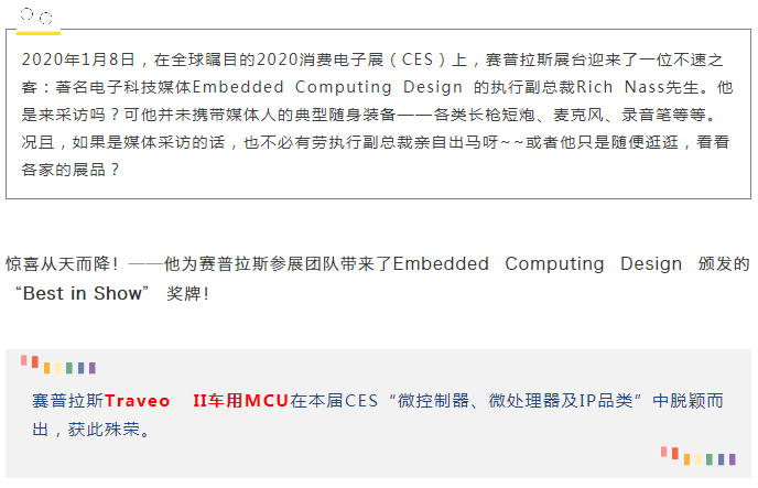 沒有閃爍不停的鎂光燈,沒有激動人心的音樂,2020開年的好兆頭就這樣姍姍而來,出乎意料,又在情理之中——與司空見慣的各類光鮮亮麗的頒獎儀式不同,務實、客觀、專業的美國電子科技媒體慣以這種看似平淡、出其不意的方式,表達他們對創新和卓越產品的認可。事實上,他們早已在后臺做了大量工作,仔細研究了眾多公司的相關參展產品,才遴選出其中的佼佼者。就如同Traveo II車用MCU的研發,經過無數日日夜夜默默無聞的埋頭骨干,最終修成正果。