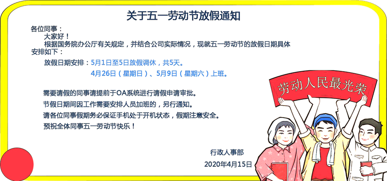 | 關于2020年五一勞動節的放假通知 |