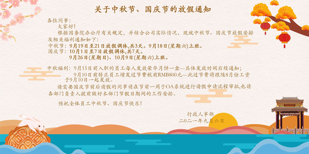 | 關于2021中秋節、國慶節的放假通知 |
