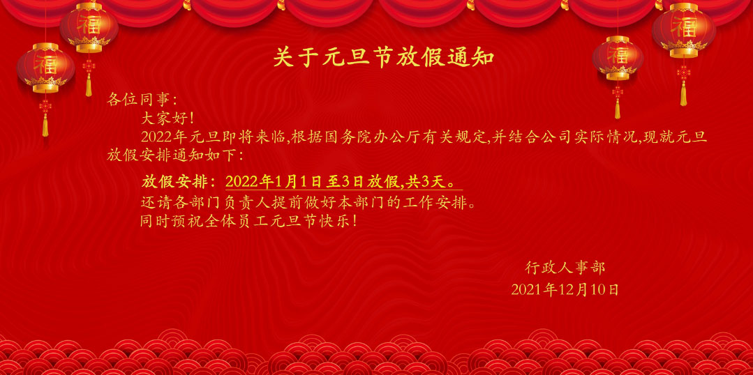 | 關(guān)于2022元旦節(jié)放假通知! |